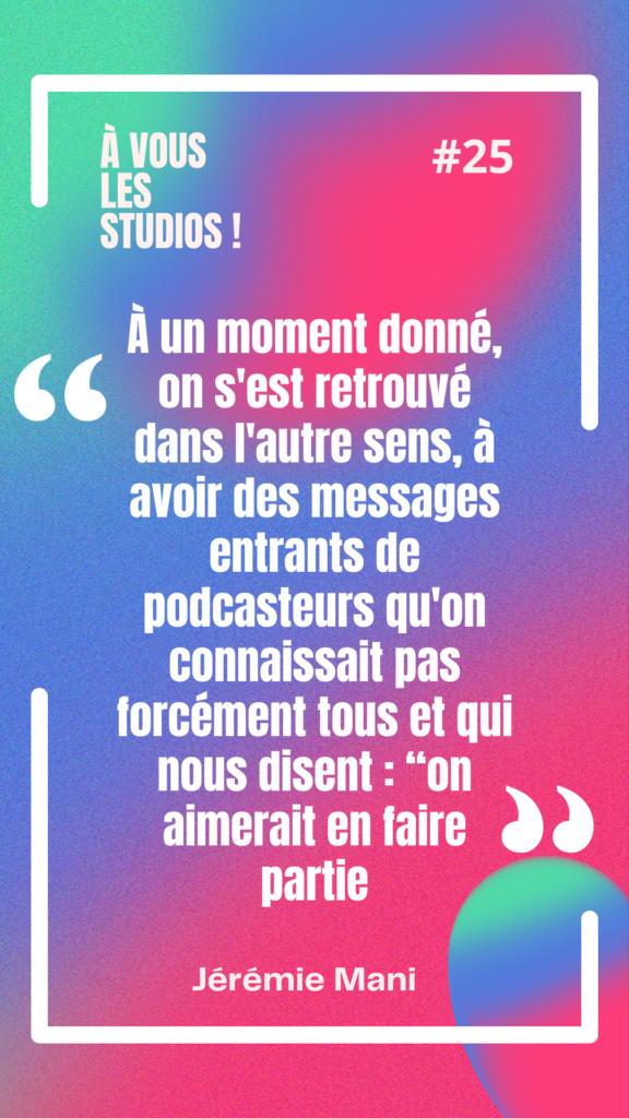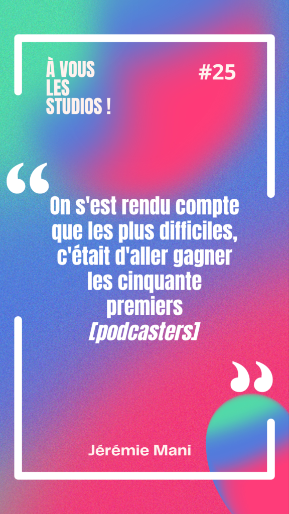 Jérémie est très transparent : au début, ils partaient de zéro dans le monde du podcast. Peu de contacts, pas de légitimité installée.
