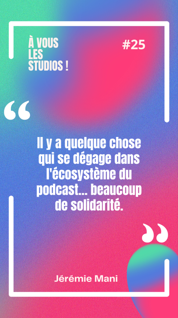 Dans cet épisode d’À Vous Les Studios, on reçoit Jérémie Mani, cofondateur d’Altruwe, pour revenir sur les coulisses du Podcasthon : une semaine où des podcasters publient un épisode spécial au profit d’une association. Et au passage, on comprend pourquoi le podcast peut devenir un podcast business solide, surtout en podcast B2B.